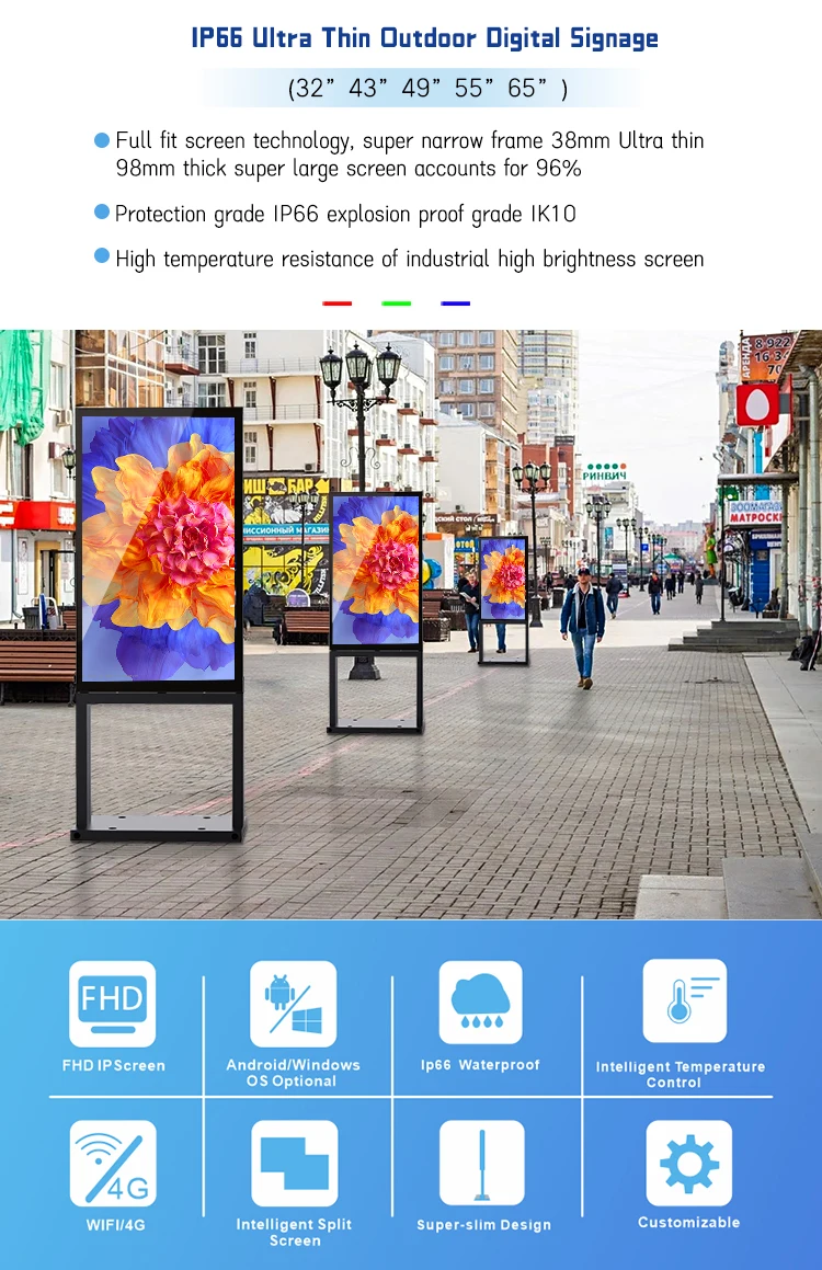 | Name: | 55'' IP66 optical bonding waterproof 2500 nits outdoor lcd advertising digital display kiosk with llow power dissipation |