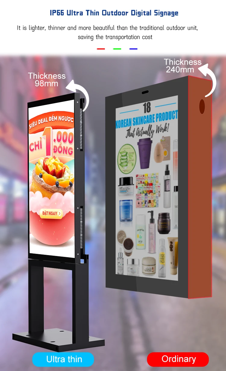 55'' IP66 optical bonding waterproof 2500 nits outdoor lcd advertising digital display kiosk with llow power dissipation